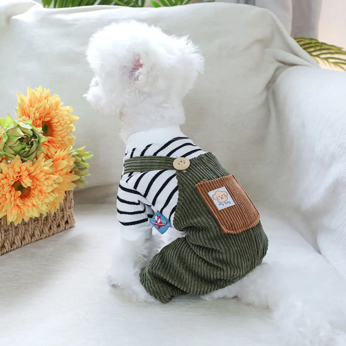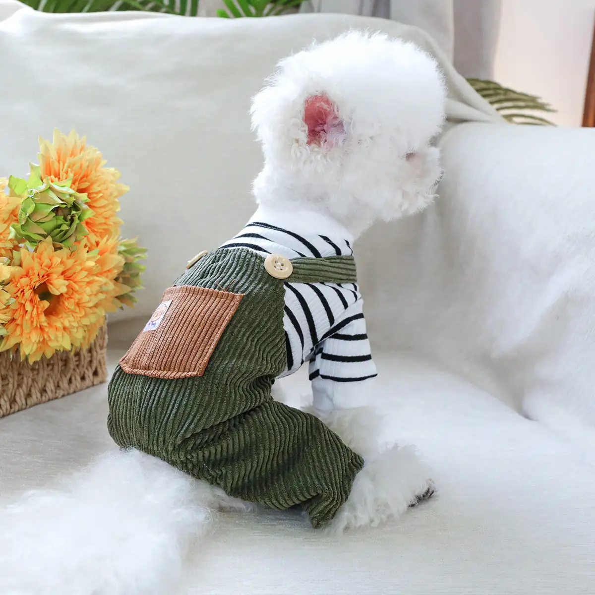 1pc Pet Dog Overalls with Pockets - Warm and Cozy Polyester Corduroy Dog Outfit for Small Breeds, Snap Button Closure - Perfect for Autumn and Winter - For Small Dog Owners - Ideal Gift for Dog Lovers