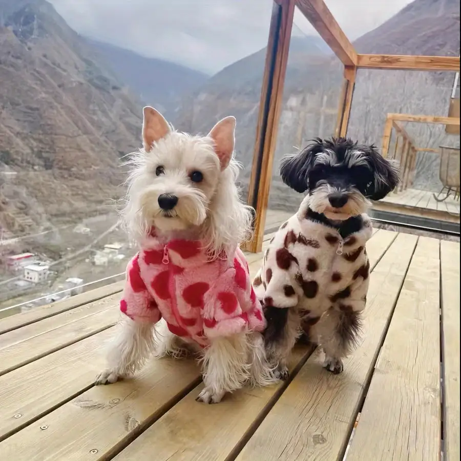 Ultra-Warm 1pc Pet Jacket with Heart Patterns for Small Breeds - Polyester Woven Fabric with Zipper Closure, Perfect Christmas Gift