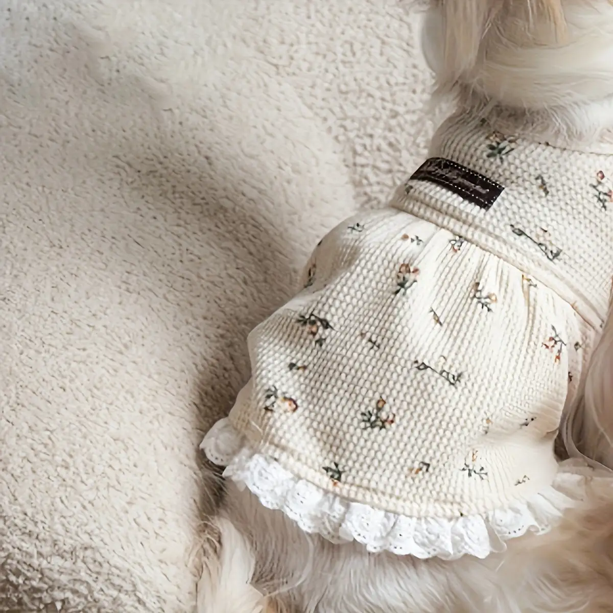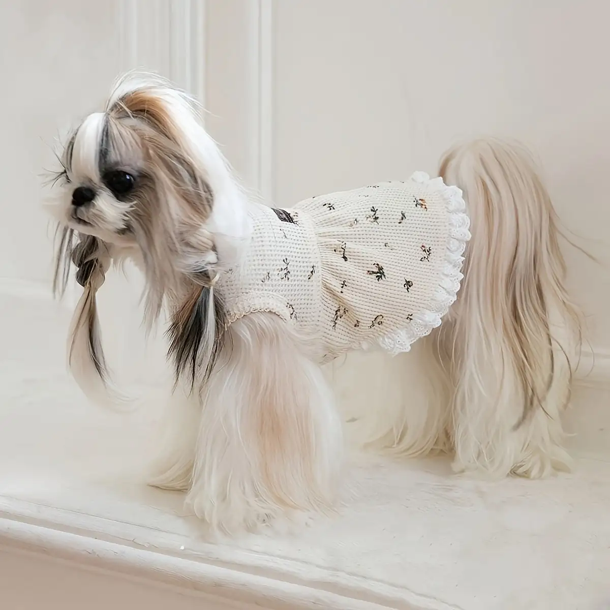 Waffle Grid Embroidered Pet Vest Dress for Cats and Dogs - All-Season Pullover Pet Apparel, Woven Polyester, Suitable for Medium, Small, Mini & Toy Breeds