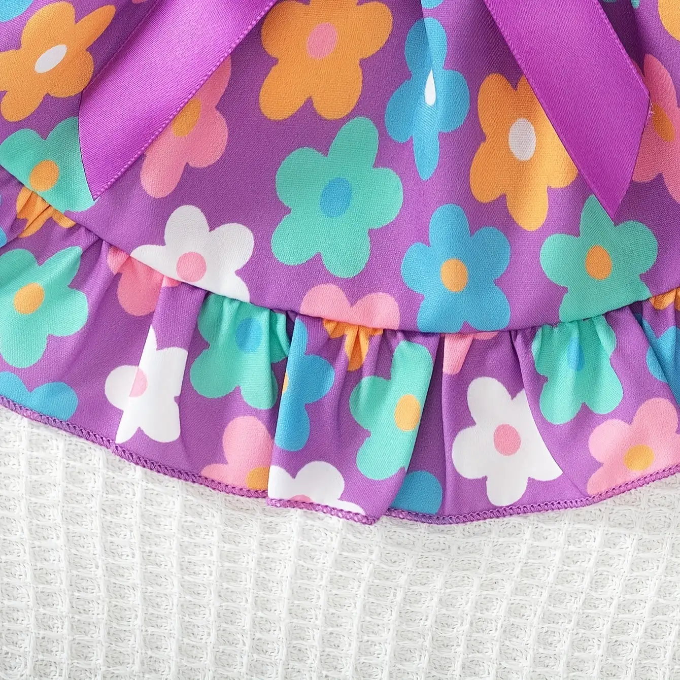 Spring and Summer Cute Pet Cat and Dog Summer Fresh Dress with Flutter Sleeves and 3D Bow, Cute Ruffle Hem