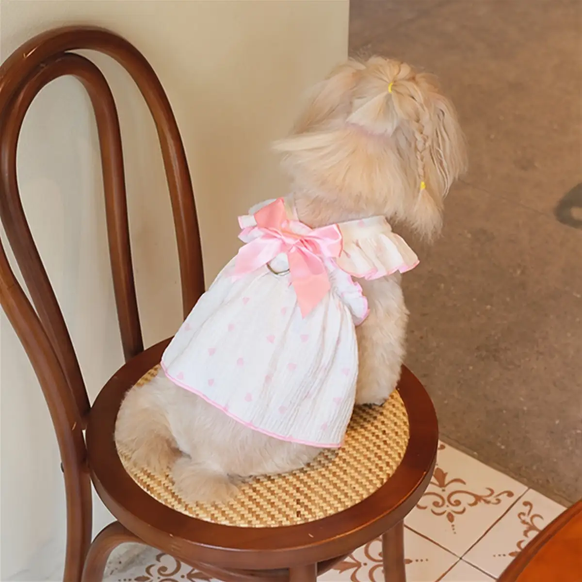 All-Season Pet Dress with Heart Pattern, Polyester Dog Traction Apparel, Cute Bow-Knot Design, with Ruffle Trim, for Small to Medium Breeds, Ideal for Parties, Home & Outdoor Wear