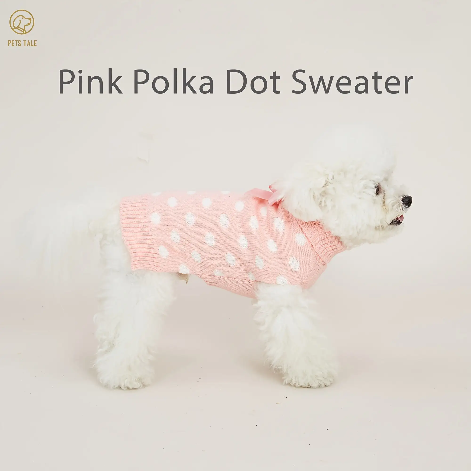Pink Polka Dot Dog Sweater - 1pc Acrylic Knit Pullover with Large Bow, Double Layer Collar, Chain Hole Detail for Small to Large Breeds