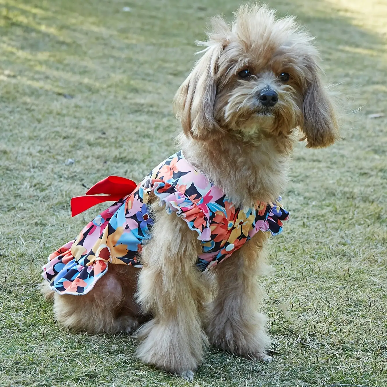 1pc Floral Pet Dress with Bow, Breathable Polyester Dog Skirt for Small to Large Breeds, Machine Washable, Snap Button Closure, All-Season Woven Apparel, Pet Clothes