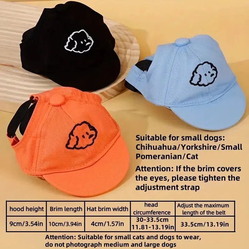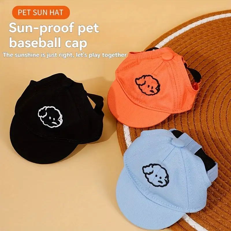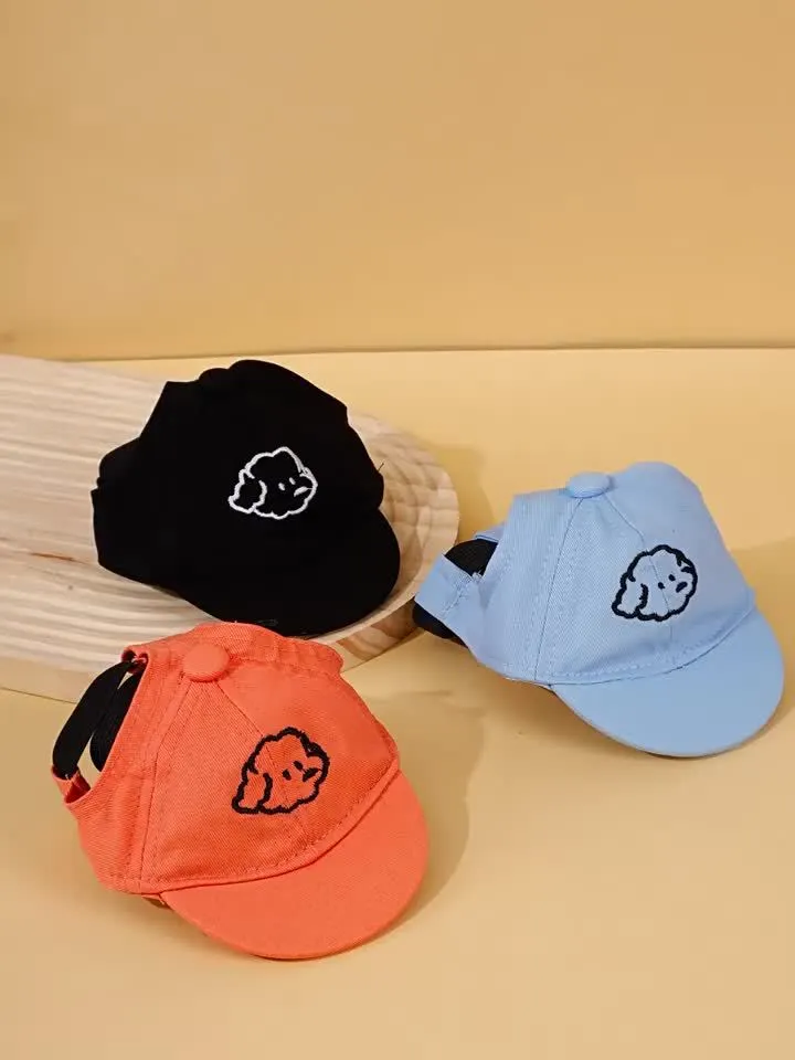 1 Adjustable Dog Sun Hat with Cartoon Dog Embroidery Pattern - Suitable for Small Cats And Dogs, Pet Baseball Cap, Multiple Colors Available