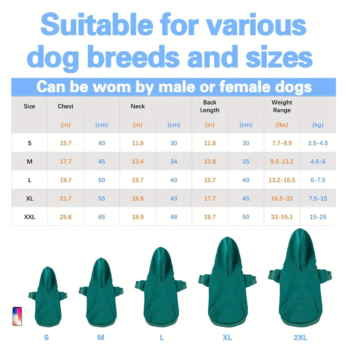 100% Polyester All-Season Knit Fabric Paiaite Dog Hoodie Sweatshirt - Pullover with Back Pocket - Ideal for Small to Medium Breeds, Walks & Adventures