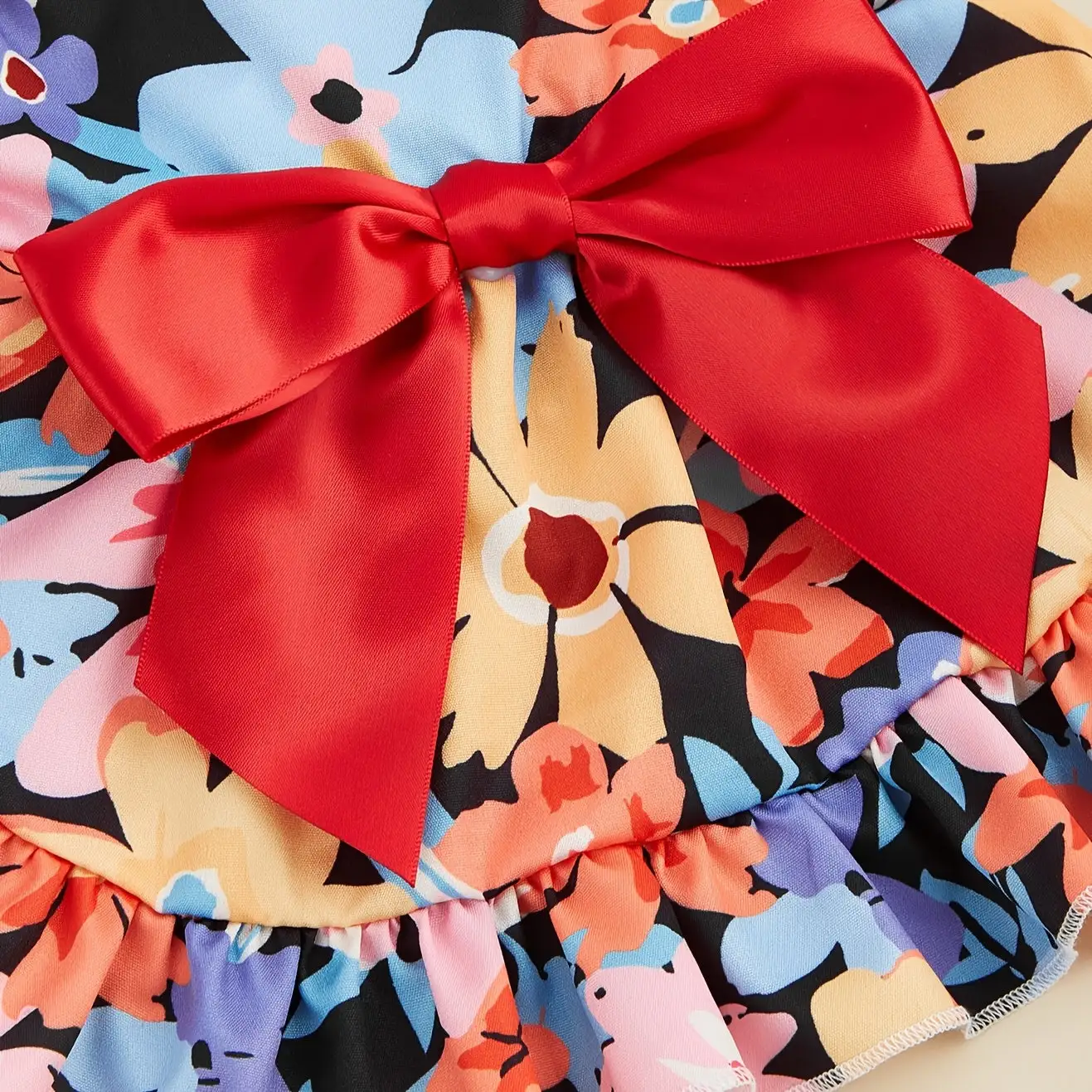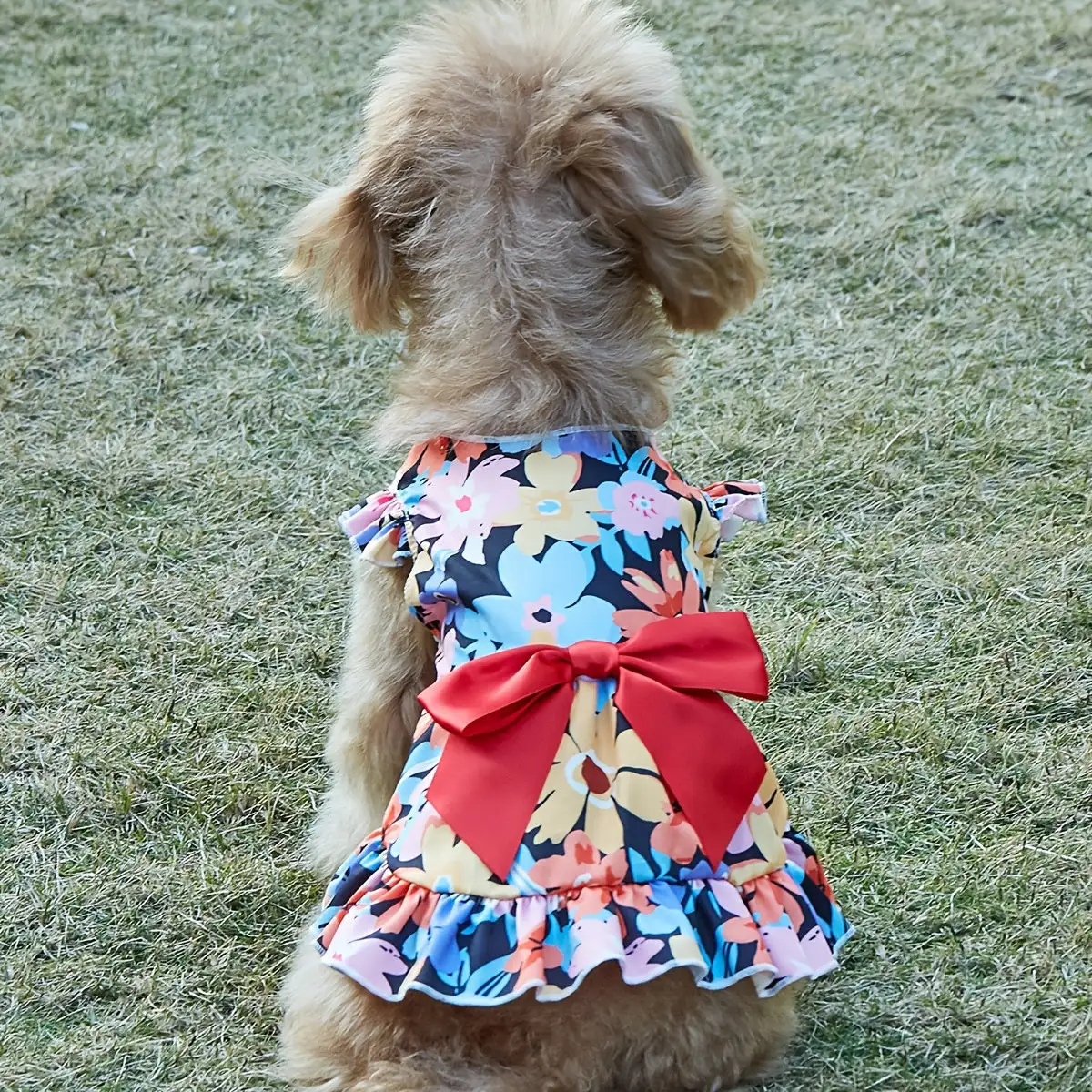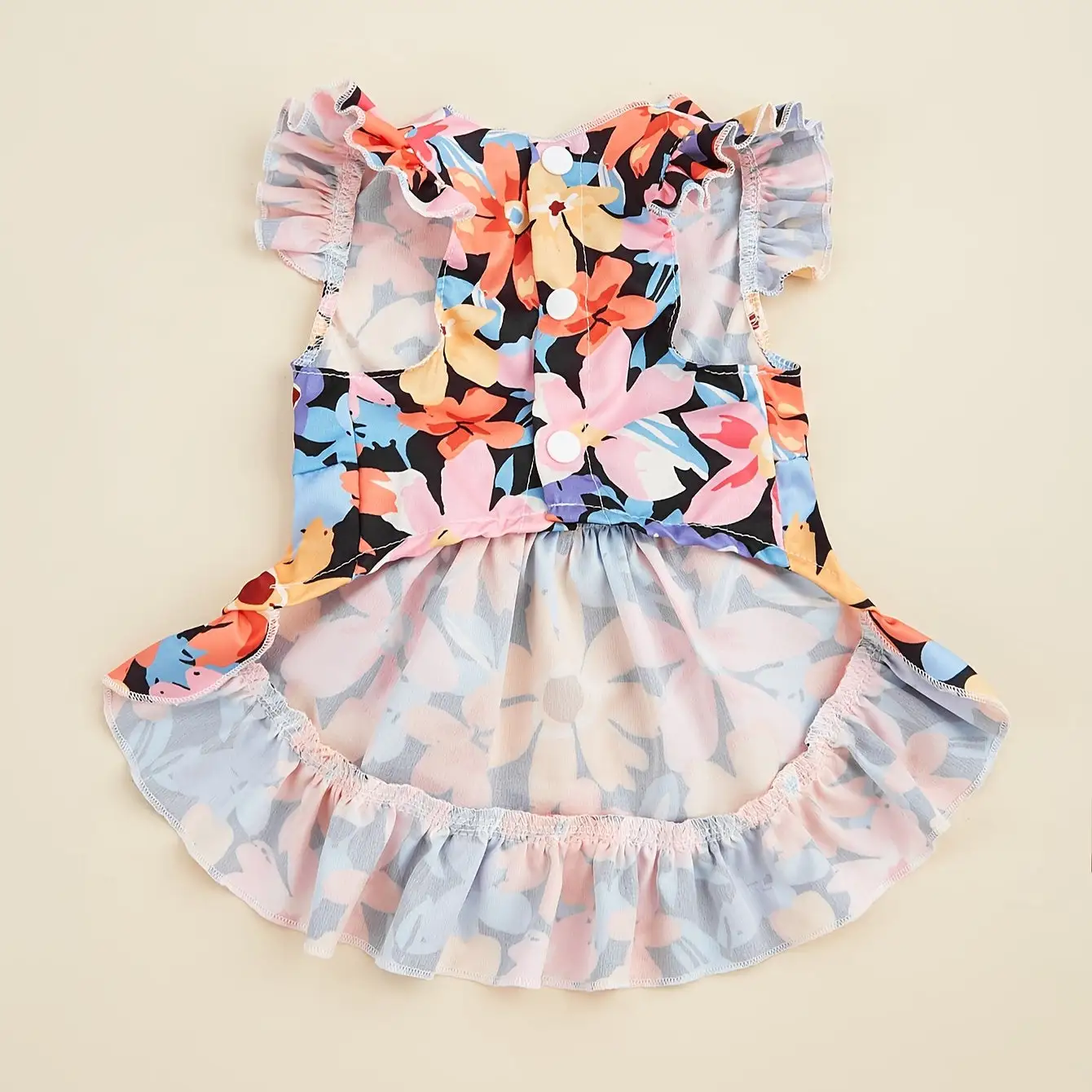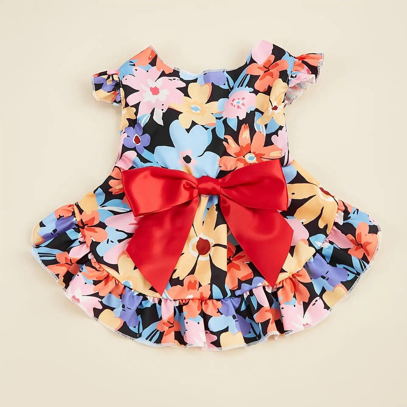 1pc Floral Pet Dress with Bow, Breathable Polyester Dog Skirt for Small to Large Breeds, Machine Washable, Snap Button Closure, All-Season Woven Apparel, Pet Clothes