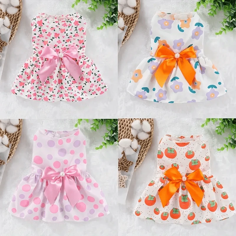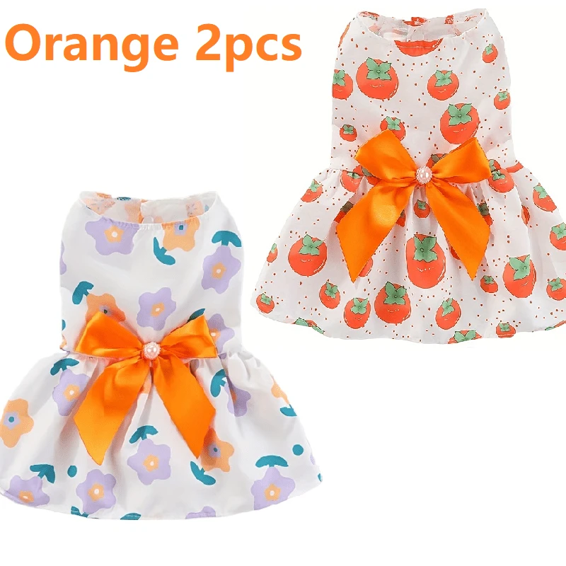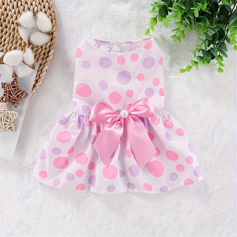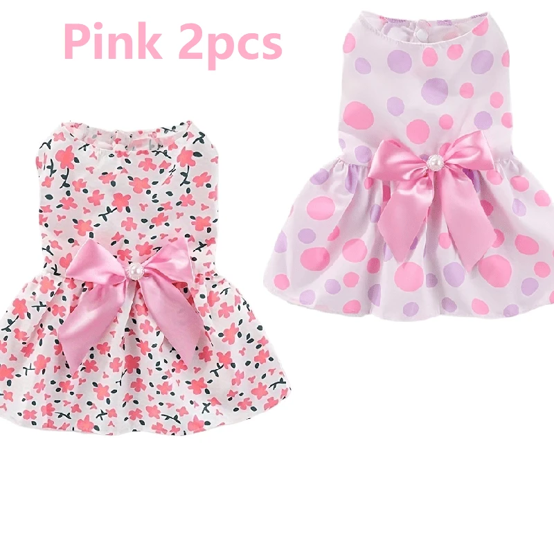 2pcs Adorable Cartoon Dog Dresses for Small & Medium Breeds - Pink with Floral & Polka Dot Patterns, Comfortable Polyester, Princess Style, Buckle Closure, Spring & Summer Pet Dresses, Pet Dresses|Playful Dog Design|Polyester Fabric
