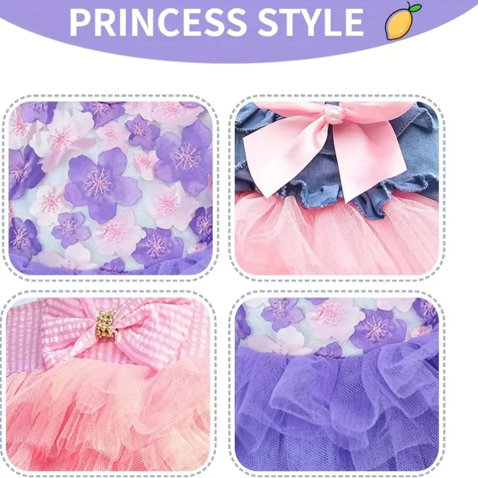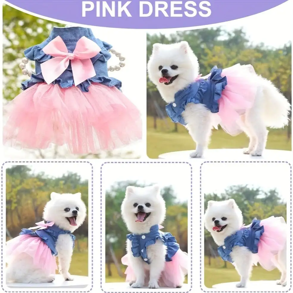 3 Pack Small Dog Dresses for Girls - Summer Breathable Puppy Clothes, Cute Cat Skirt, Pup Tutu, Pink Yorkie Clothing for French Bulldog and Chihuahua - Woven Polyester Pullover with Snap Button