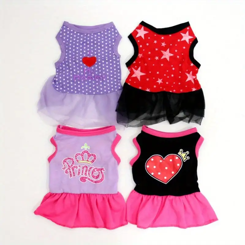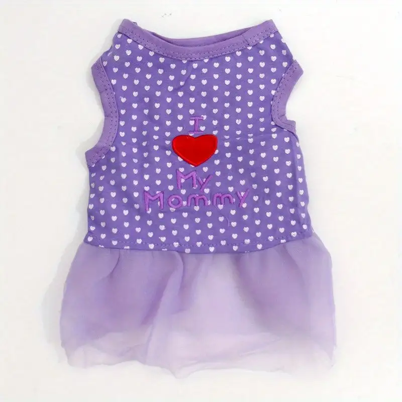 Pet Clothing Summer Mesh Skirts for Dogs And Cats with Star And Heart Prints, Love Mom Design