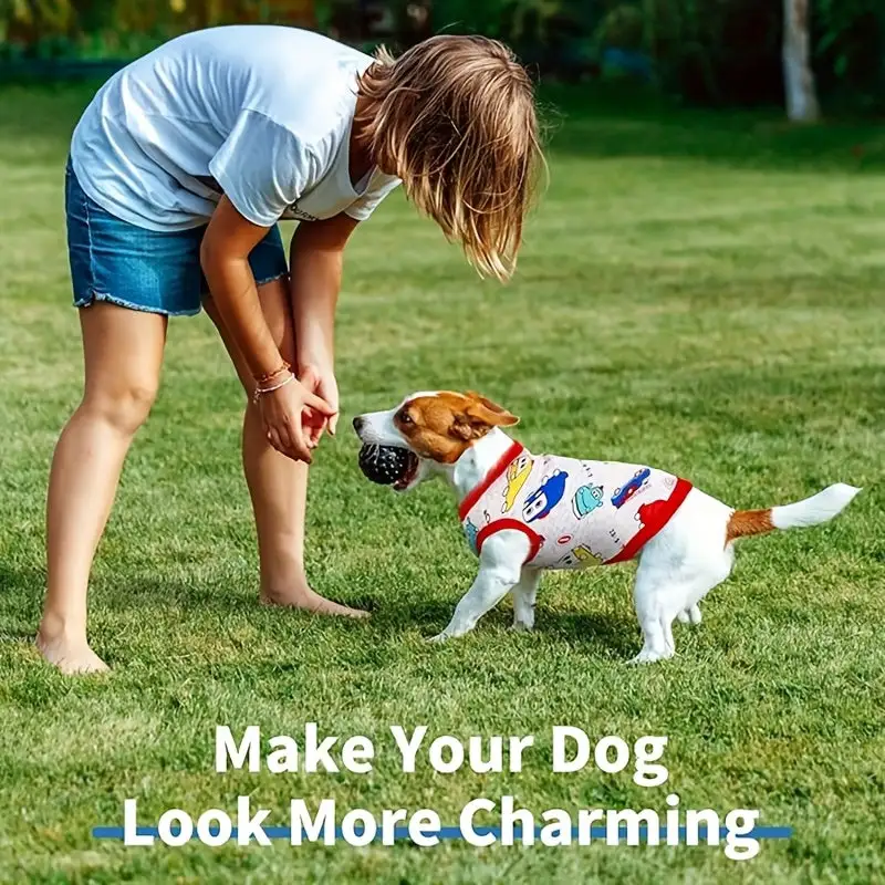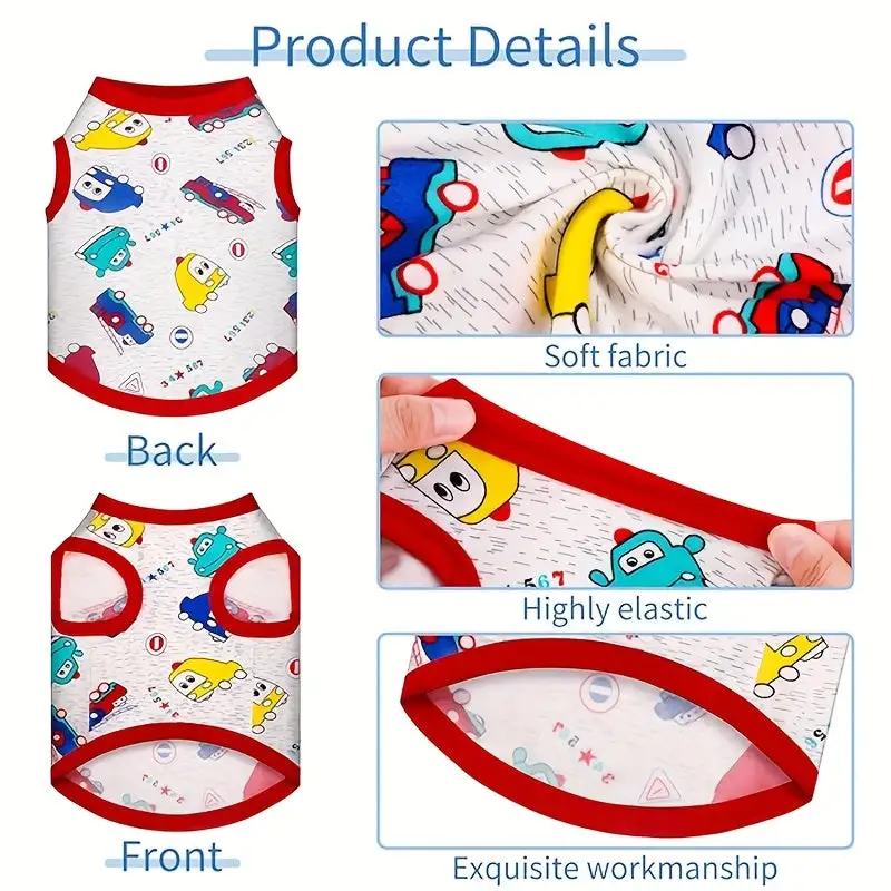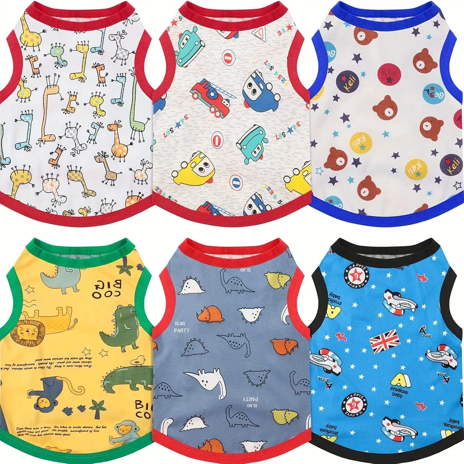 6pcs Cute Cartoon Dog Shirts - 100% Spandex Breathable Pet Shirts for Small\u002FMedium Dogs, All-Season Machine Washable Puppy Apparel with Vibrant Designs (Dinosaur, Lion, Car, Star)