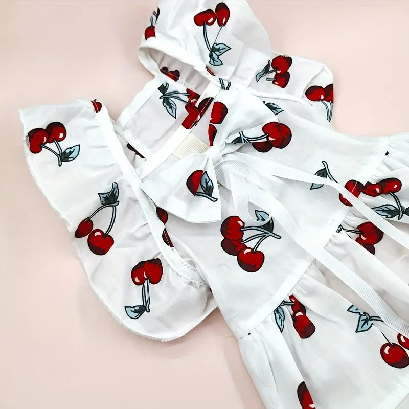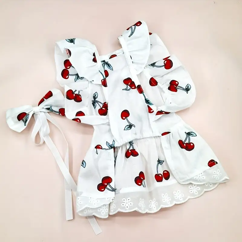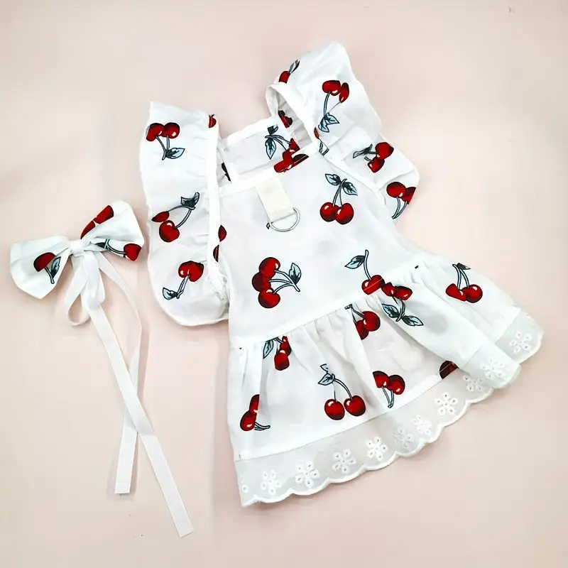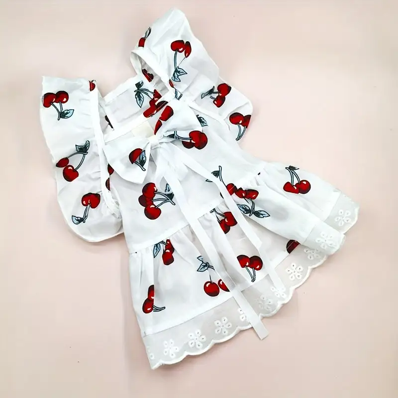 Adorable Cherry Print Pet Dress with Elegant Lace & Stylish Bow Tie - Perfect for Spring, Summer, and Autumn