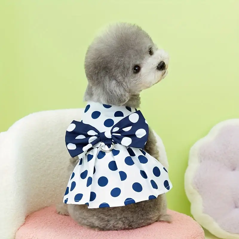 Adorable Polka Dot Dog Dress - Ultra-Comfortable, Stylish Casual Wear for Small Pups with Secure Traction Buckle