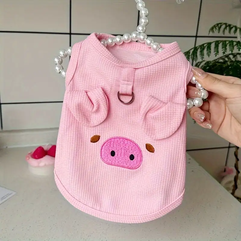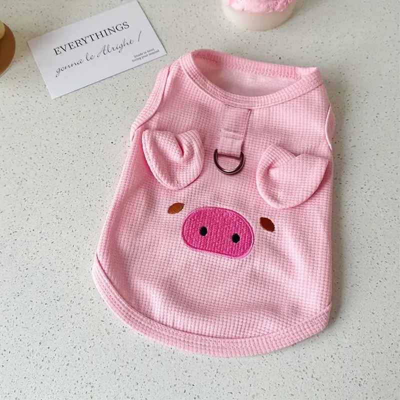Breathable 1pc Cute Korean Style Pet Clothes, Adorable Animal Faces Design Vest with Leash Ring for Teddy, Bichon, Poodle