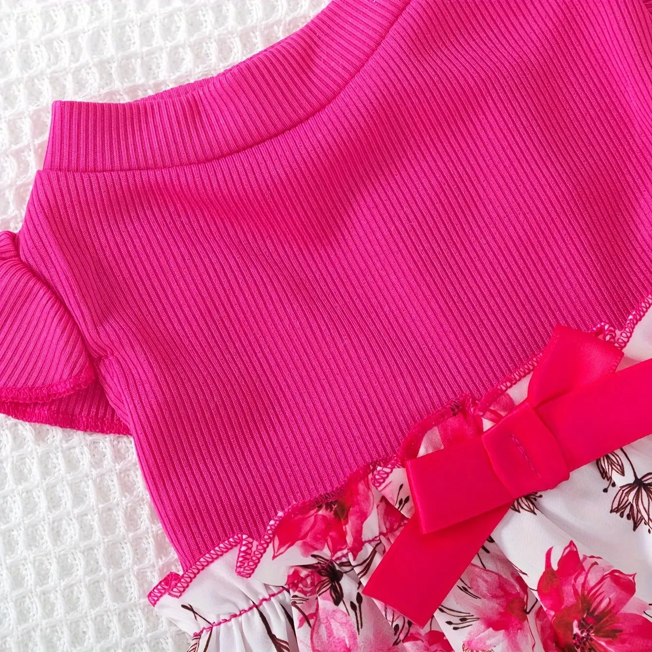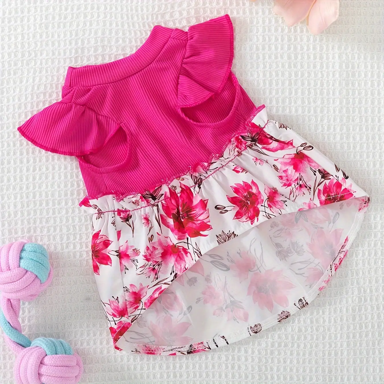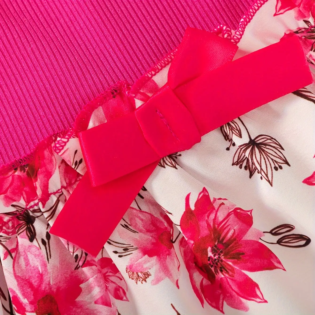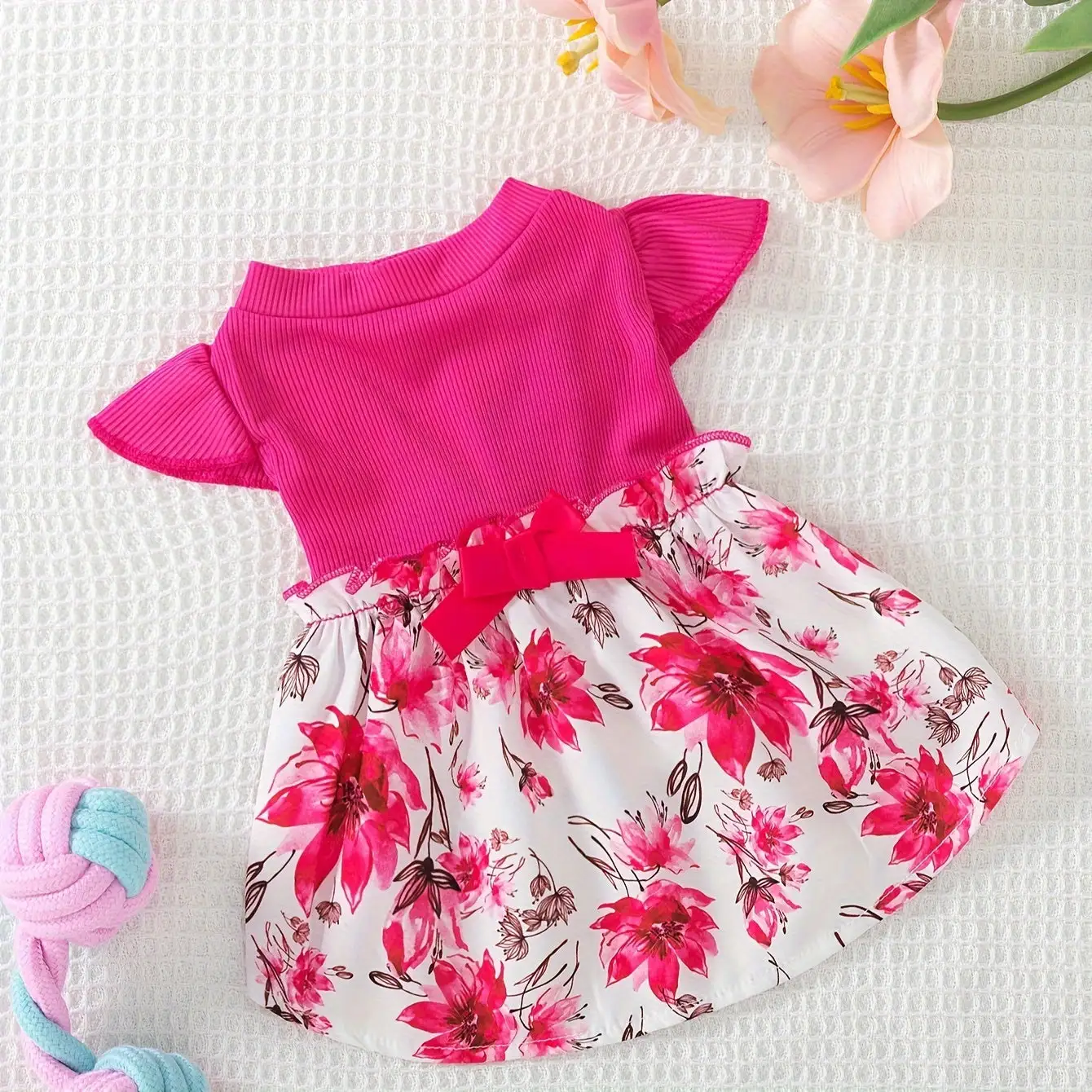 Chic Two-Tone Bowknot Pet Dress with Flutter Sleeves - Perfect for Small to Extra-Small Dogs, Ideal for Fall\u002FWinter