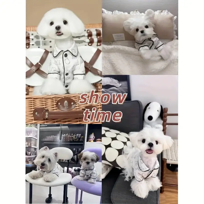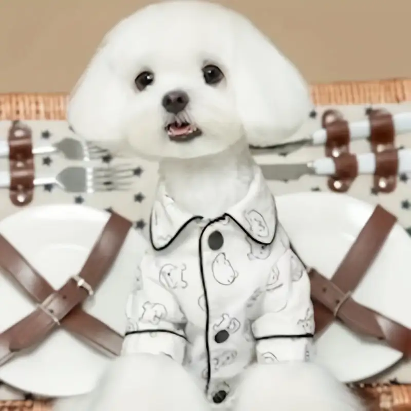 Cozy& Comfortable Small Dog Clothes- Lightweight Summer Pajama Set with Bear Pattern, Breathable Home Wear to Teddy\u002FBichon Puppies