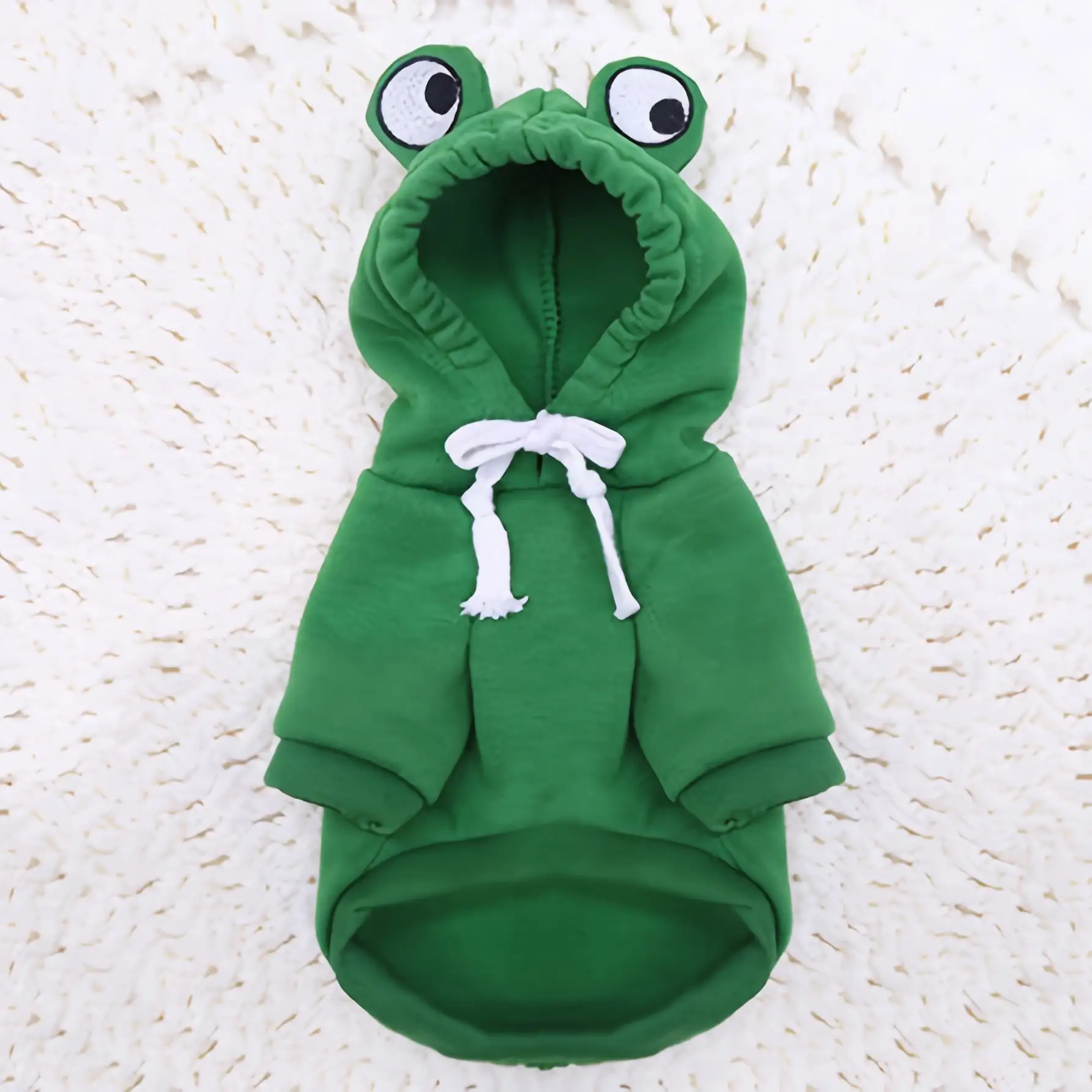 Green Fun Design Dog Hoodie - Cute Frog Pet Sweater For Small And Medium Dogs - Christmas Gift