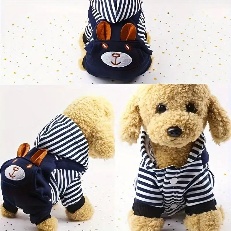 Pet Dog Hoodie, Winter Warmth, 4-Legs Transformation, Teddy Bulldog Outfit, Knitted Polyester, Button Closure, Medium\u002FLarge\u002FSmall Breeds