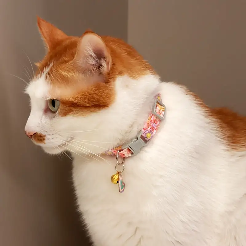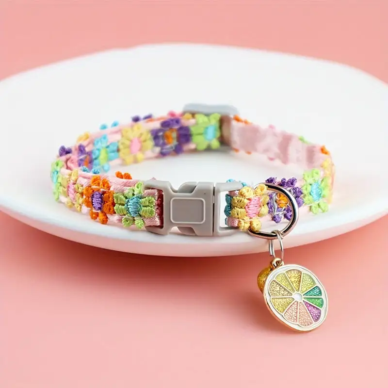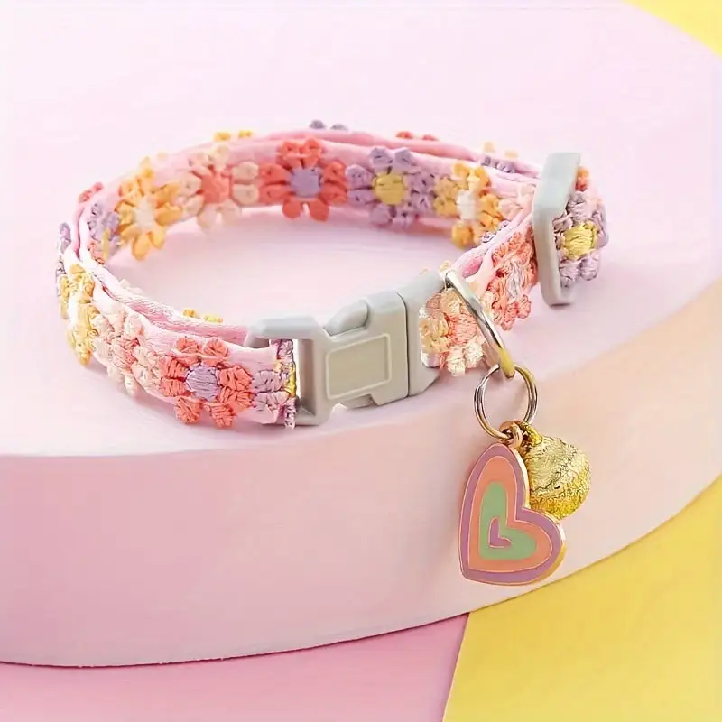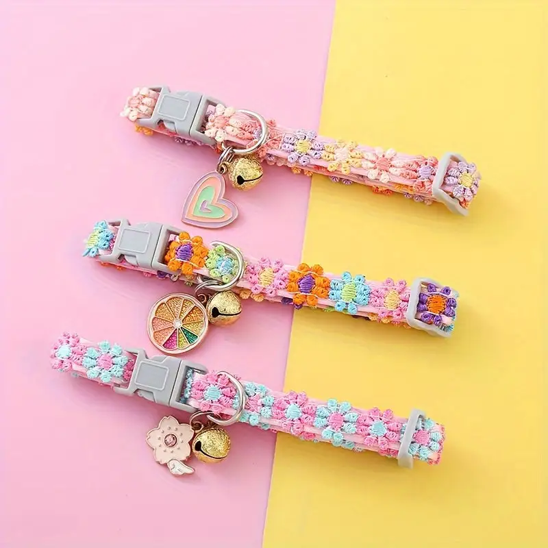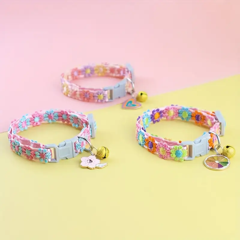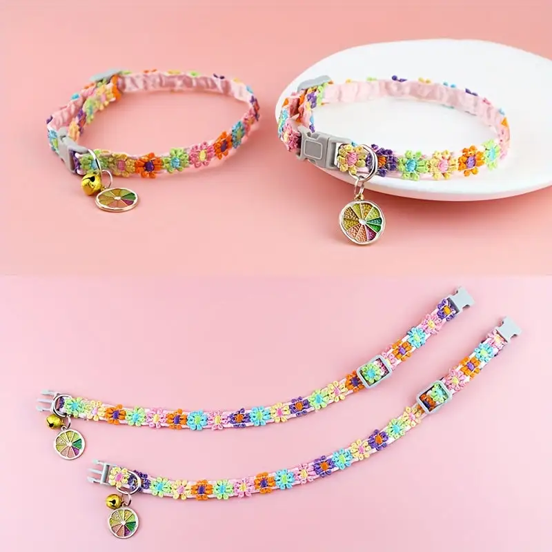 Sparkly Floral Lace Pet Collar with Bell - Colorful Adjustable Necklace for Cats and Dogs, Polyester Fiber