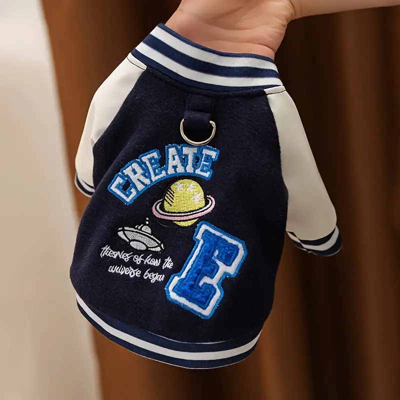 Stylish Polyester Pet Sports Coat - Small Breed Dog Baseball Jacket with Snap Button - Planetary Pattern Puppy Sweater for Spring\u002FFall Outerwear