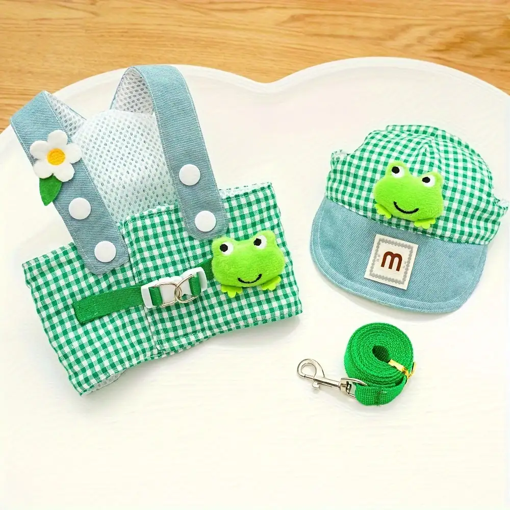 Three-piece Duck and Frog Spring and Summer Pet Chest Harness and Leash Set for Cats and Puppies