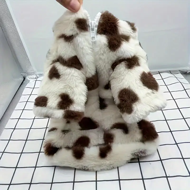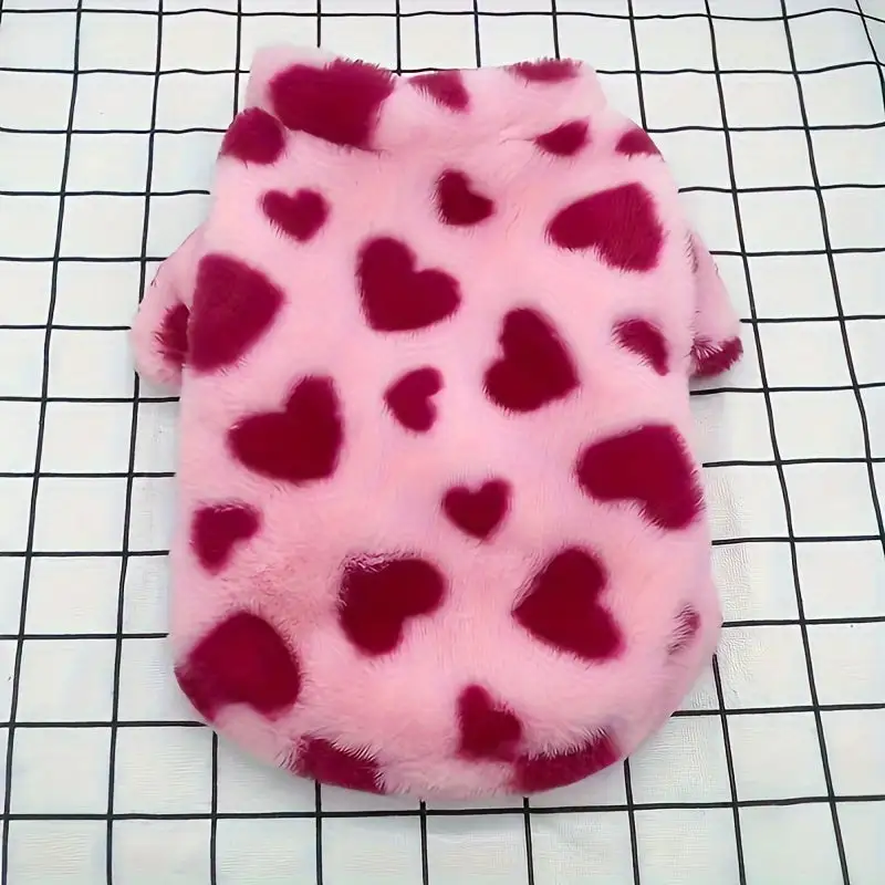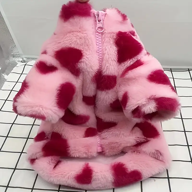 Ultra-Warm 1pc Pet Jacket with Heart Patterns for Small Breeds - Polyester Woven Fabric with Zipper Closure, Perfect Christmas Gift