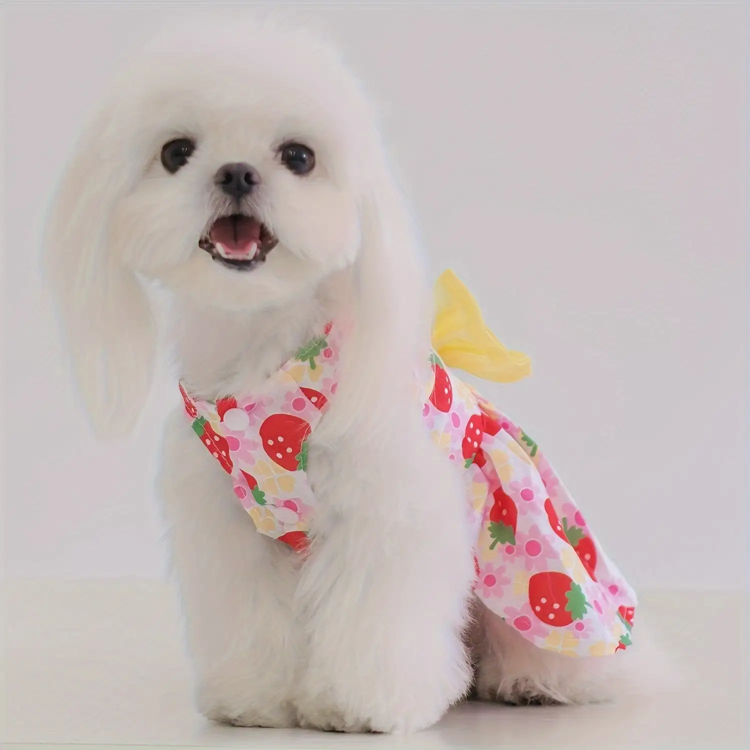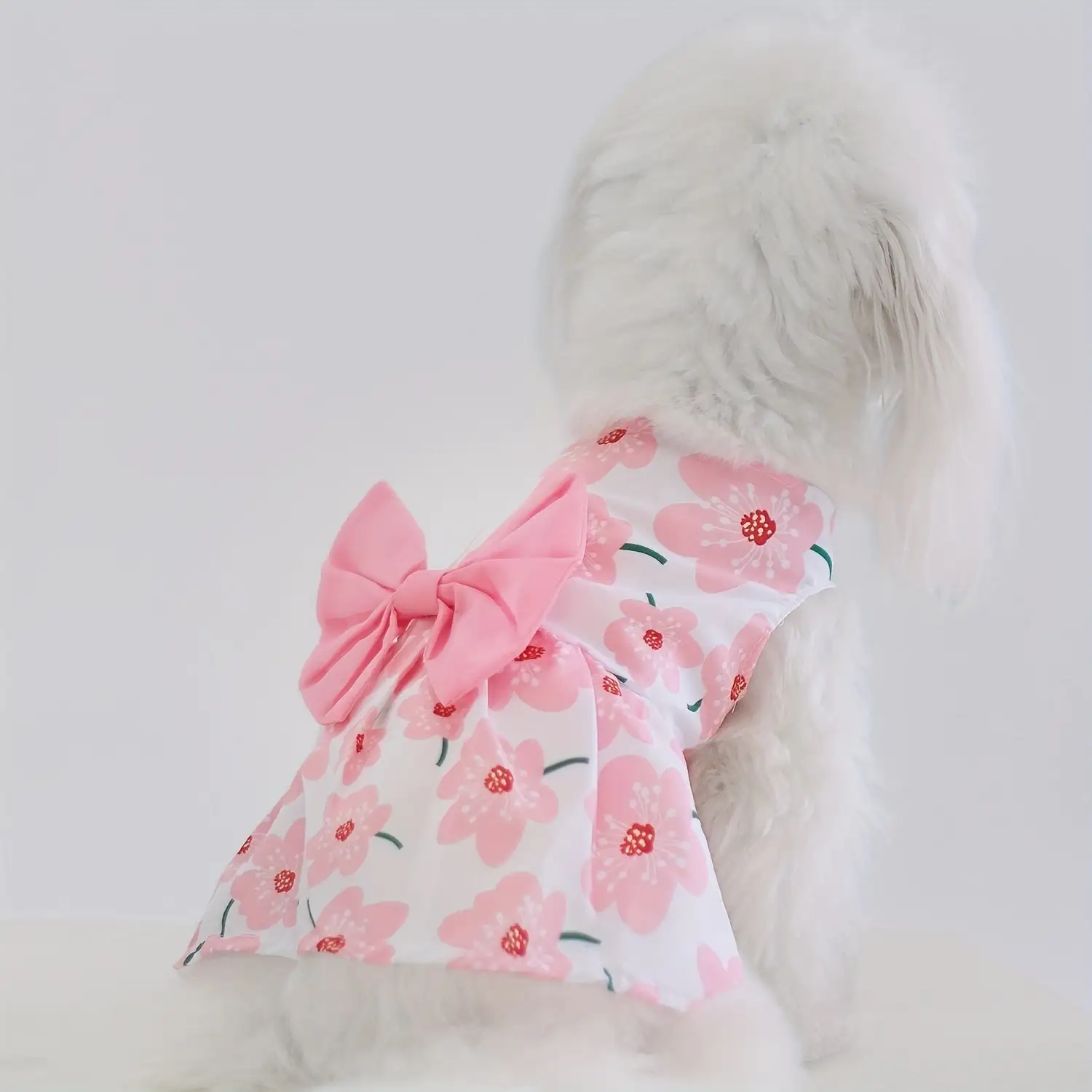 5pcs Floral Princess Dress Set for Small Dogs & Cats - Breathable Summer Pet Apparel with Bowknot, Ideal for Yorkies, Bulldogs, Bichons, Pomeranians, Chihuahuas, for Autumn, Spring