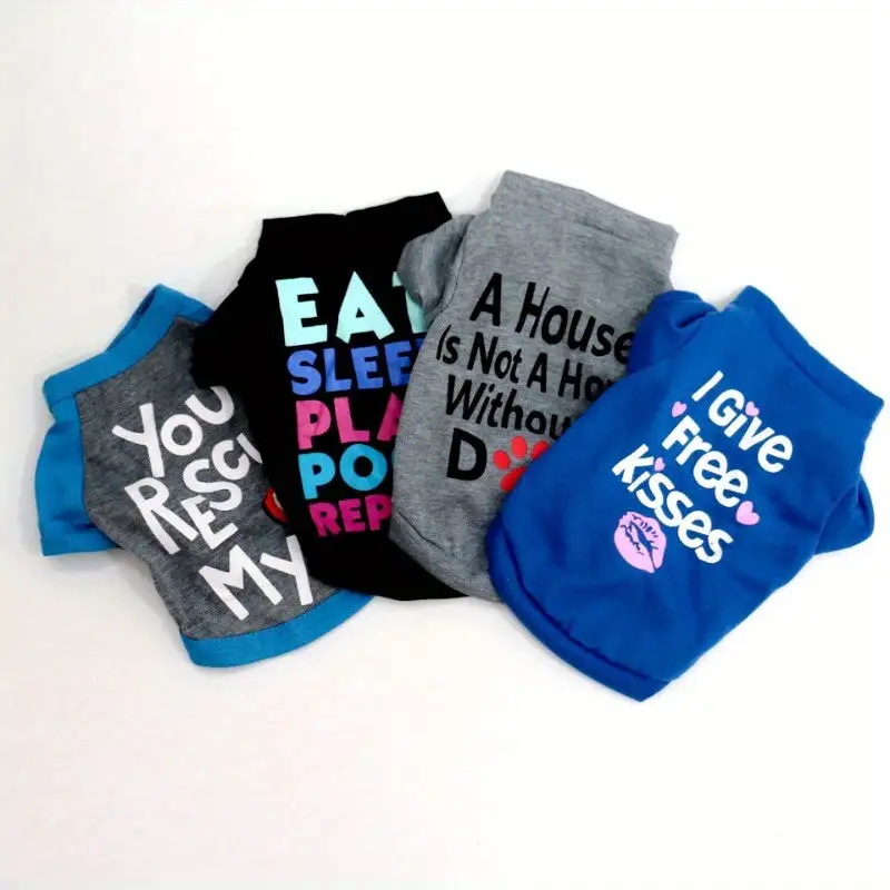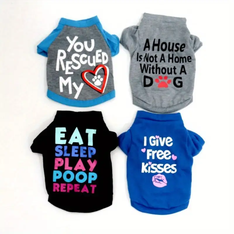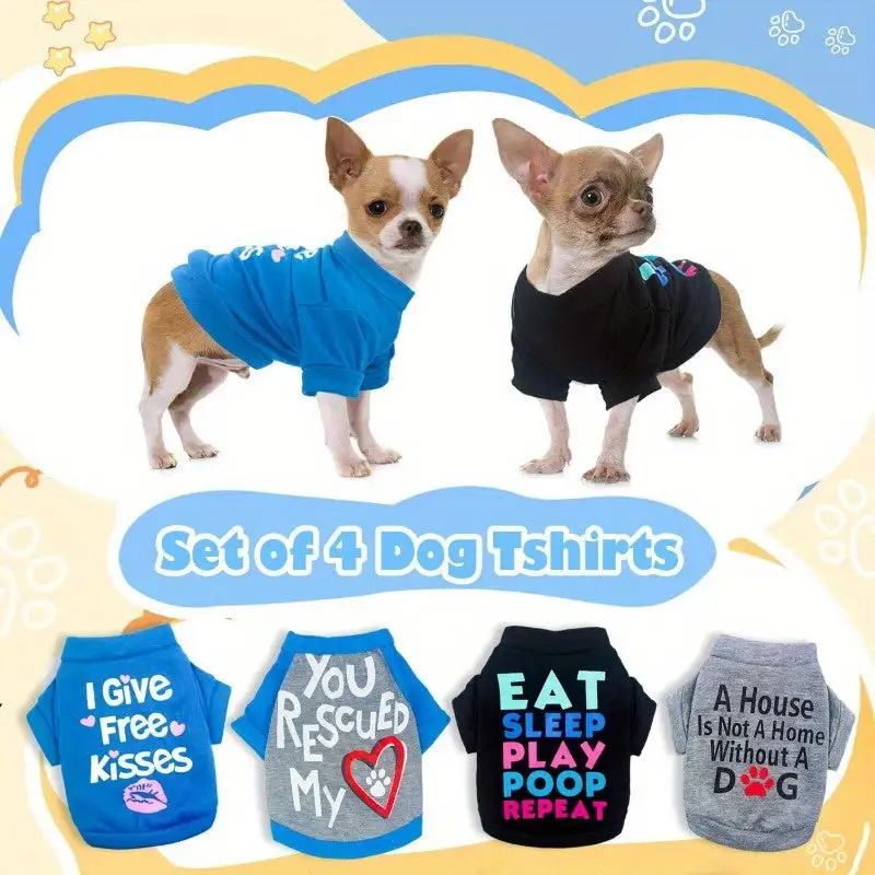 Lightweight Pet T-Shirts 4pcs Lightweight Pet T-Shirts for Spring and Summer, Dog and Cat Clothing, Suitable for Male Pets