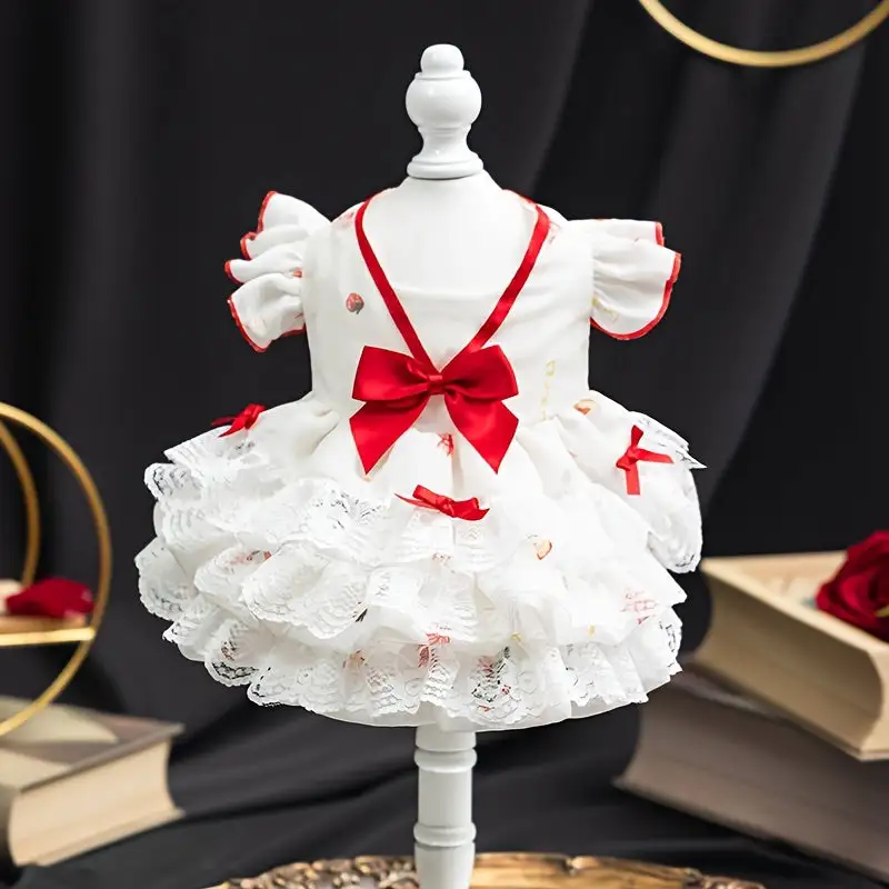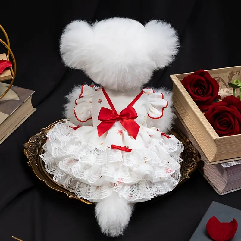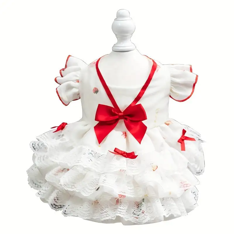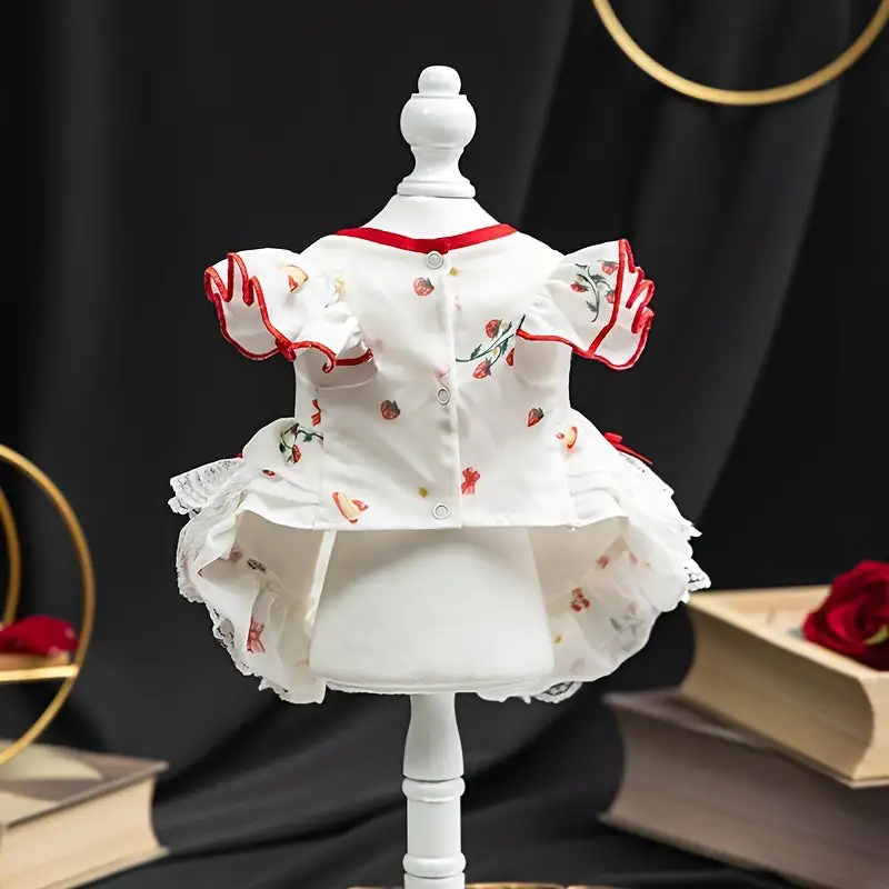 Small Breeds Charming Princess-Style Dog Dress with Floral, Bow Accents, and Snap Closure