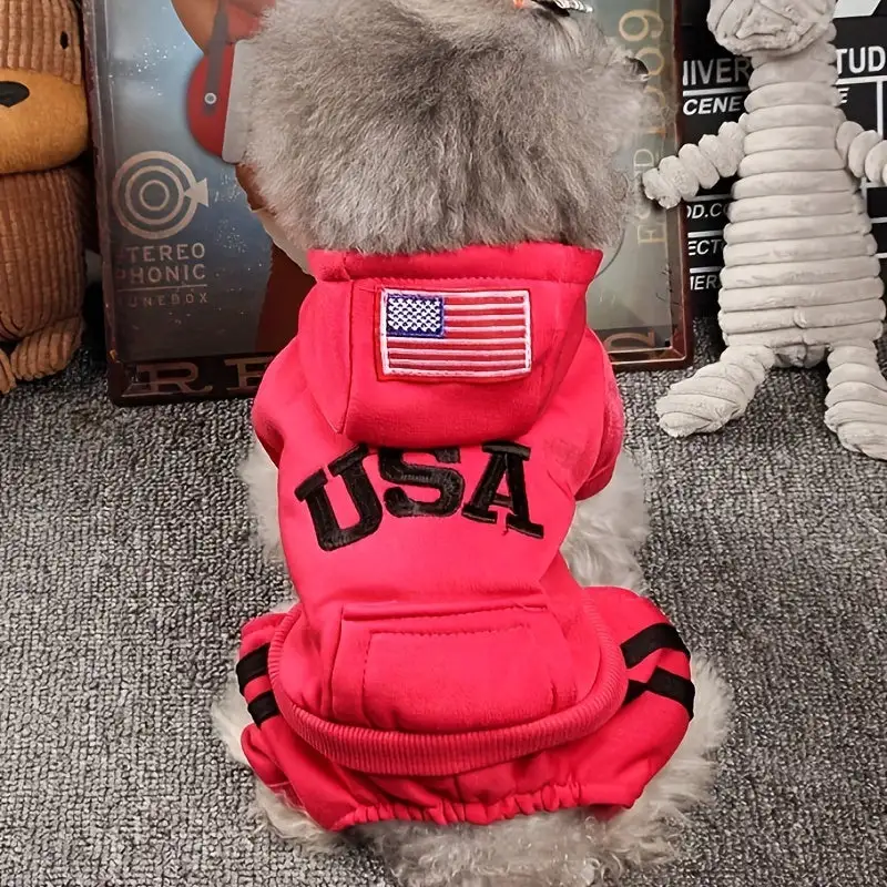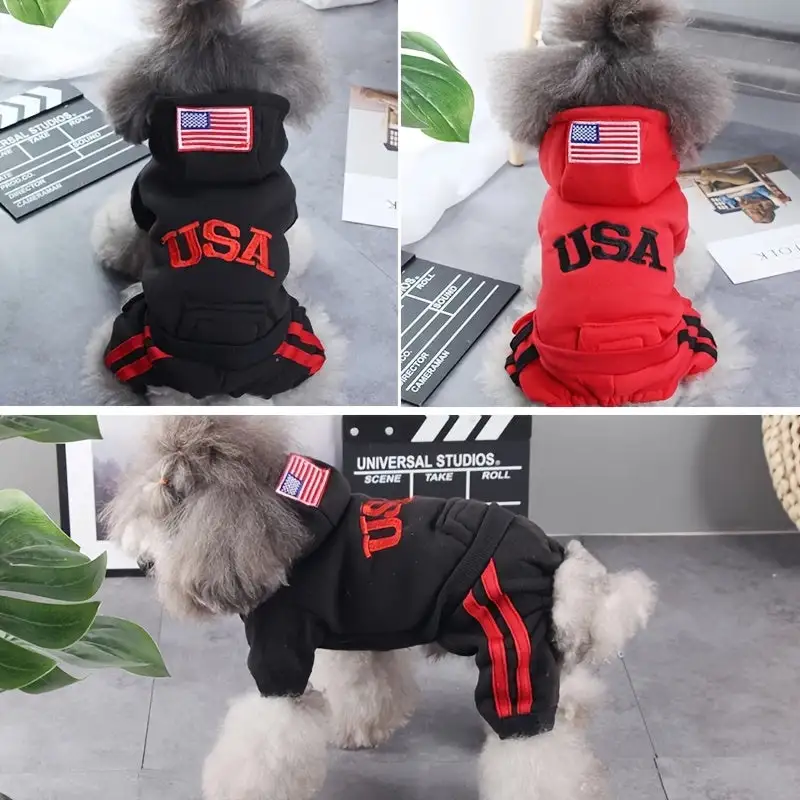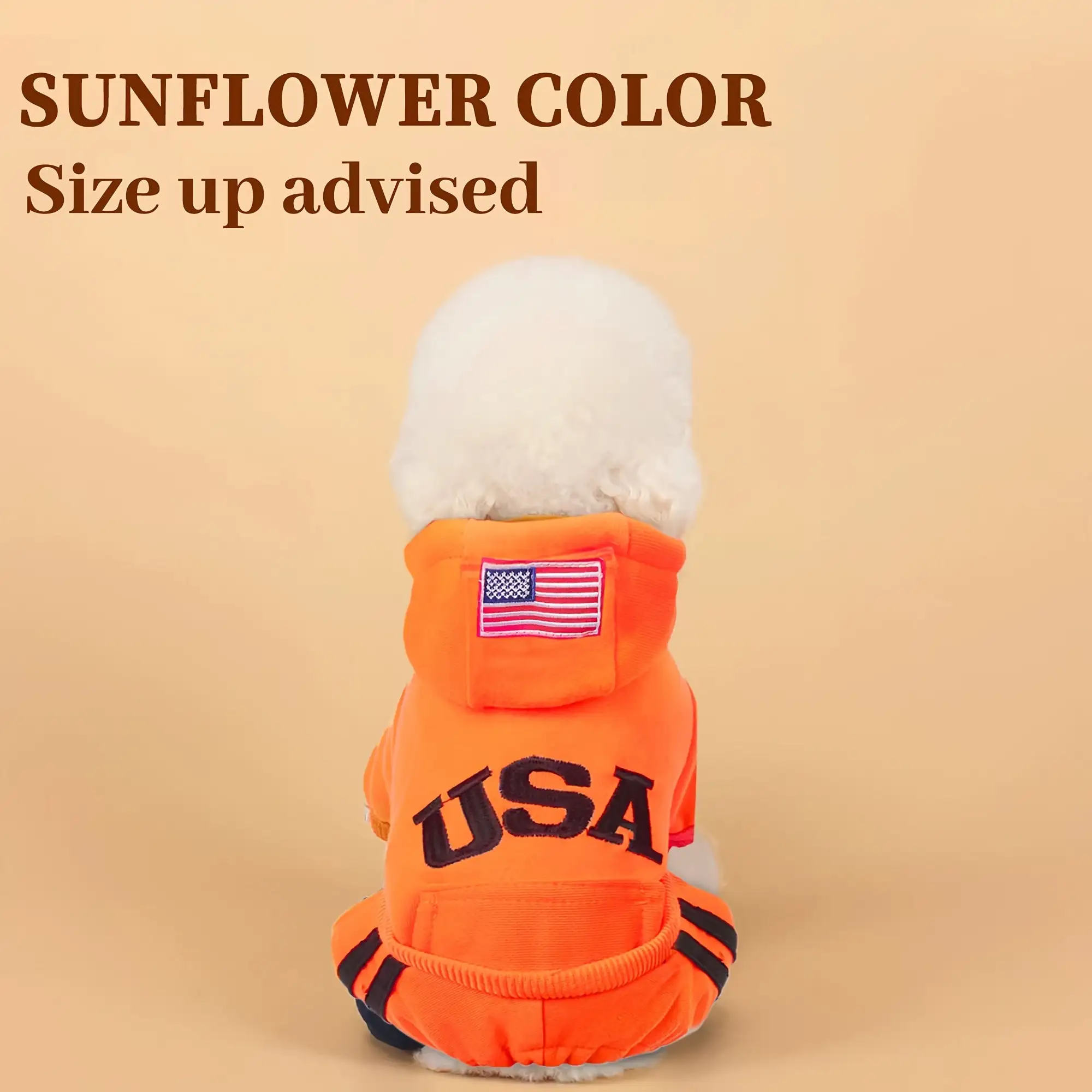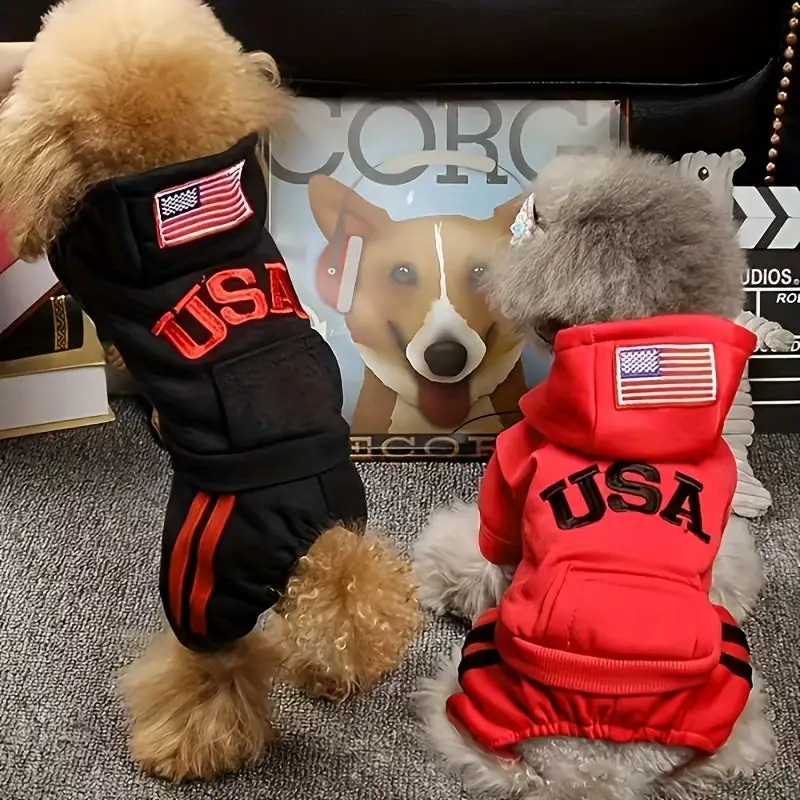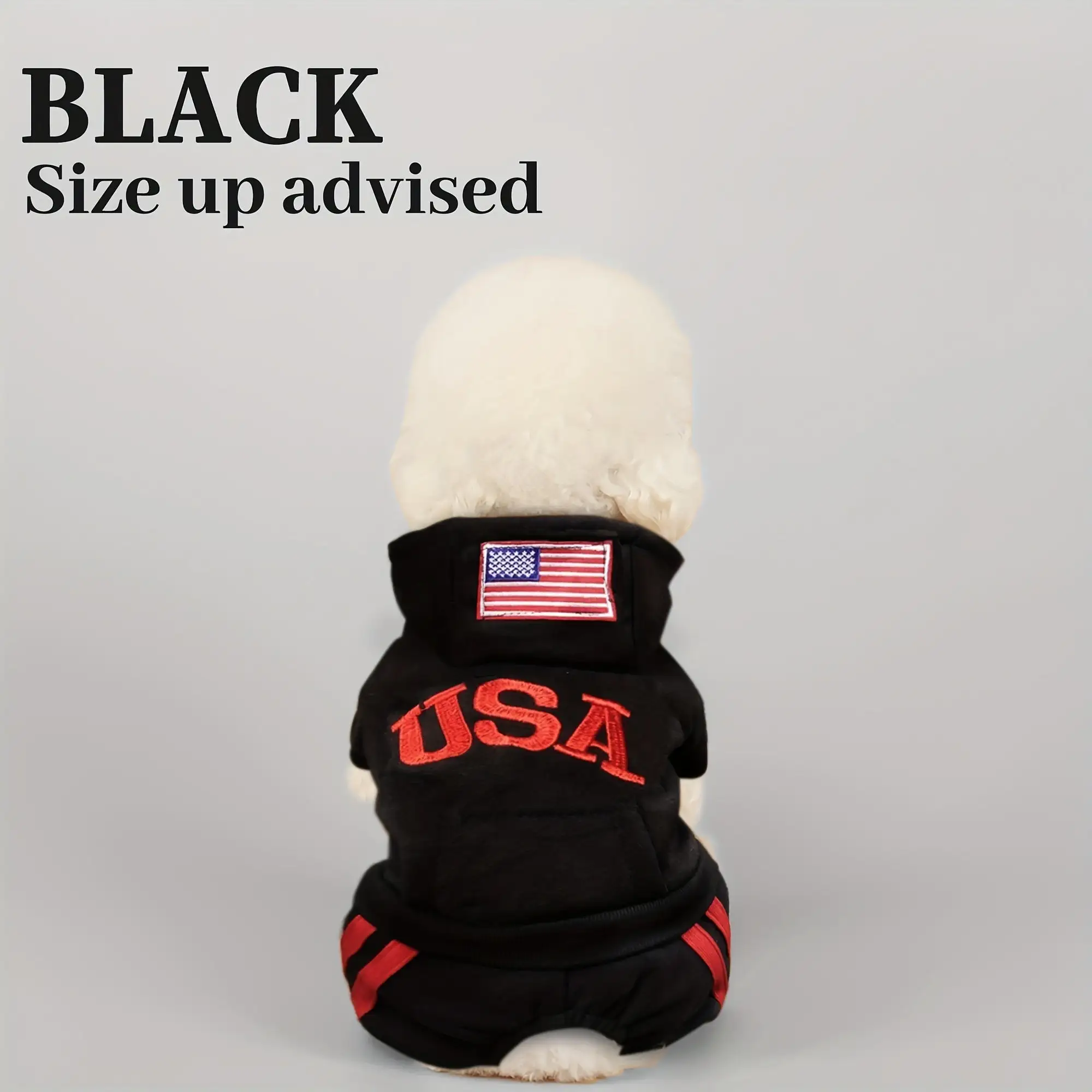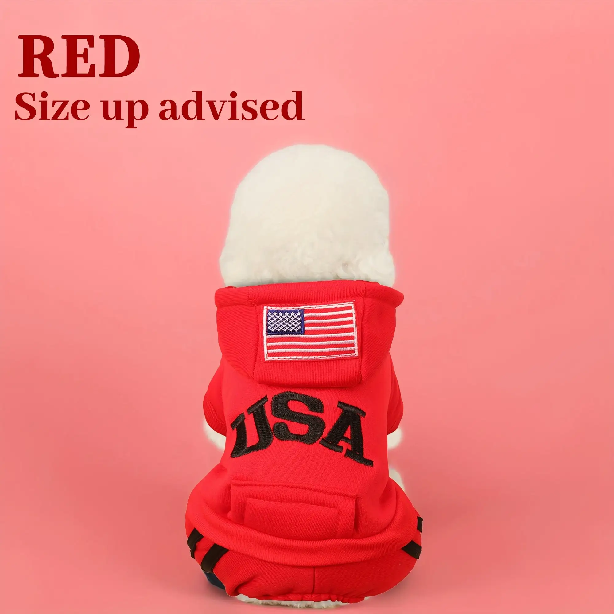Winter dog hoodies with pockets, warm & soft dog clothes! Featuring 3D embroidery showing American spirit and convenient snaps. Perfect for small to medium dogs, including cozy dog coats, trendy dog sweatshirts and lovely dog sweaters Size Up Advised
